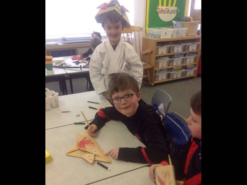 Year 2 enjoyed a fun-filled Japanese Day to celebrate the end of our topic. We had such a busy day making kimonos, writing our names in Japanese script, counting to 10, eating Japanese food with chopsticks, visiting our class sushi bar where children 'created' plates of sushi and we even experienced an earthquake drill, just like our Japanese friends would do at school.