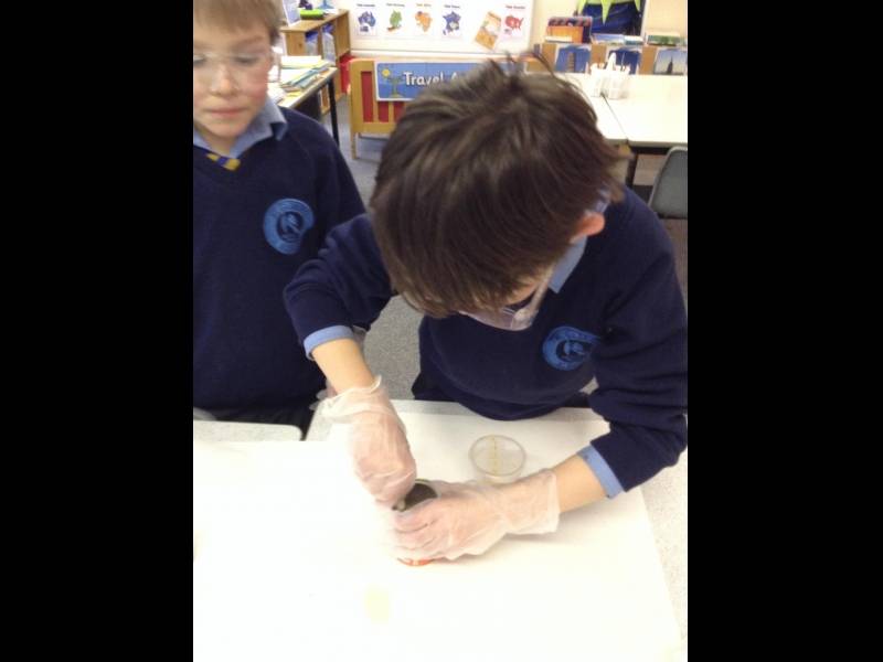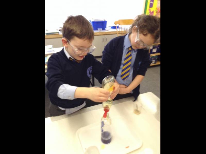 For the second week of science club we made elephant toothpaste! This was a very exciting chemical reaction which broke down hydrogen peroxide into water and oxygen, which when combined with washing up liquid made lots of foam! We used dried yeast to make the reaction happen faster and we could feel the heat that the reaction gave off!